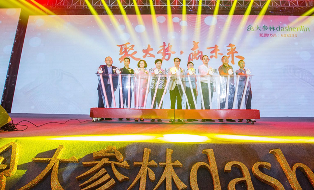 PA视讯药业集团董事长刘景萍女士与大参林医药集团董事长柯云峰先生、中国医药商业协会执行会长付明仲女士等嘉宾共同开启了“聚大势•赢未来"大参林工商合作峰会的大幕。